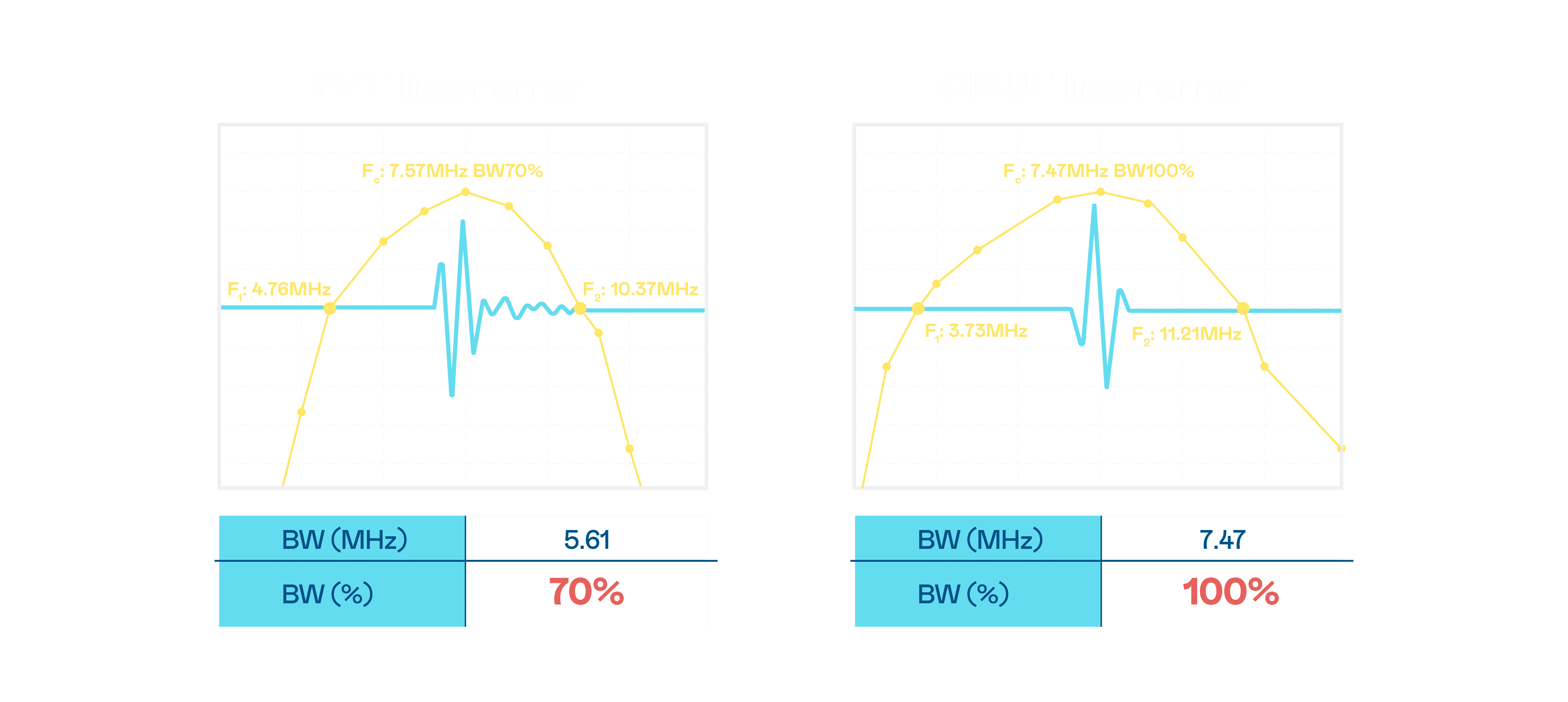 CMUT 技术是一种用电容式微机电元件来产生超音波讯号的技术。。与传统 PZT 压电式技术相比,,,,CMUT 频宽增加 30%,,,,更宽频的超音波讯号让影像解析度大幅提升,,,,是实现高影像品质医疗超音波扫描、、、促进精准医疗发展的关键技术。。。